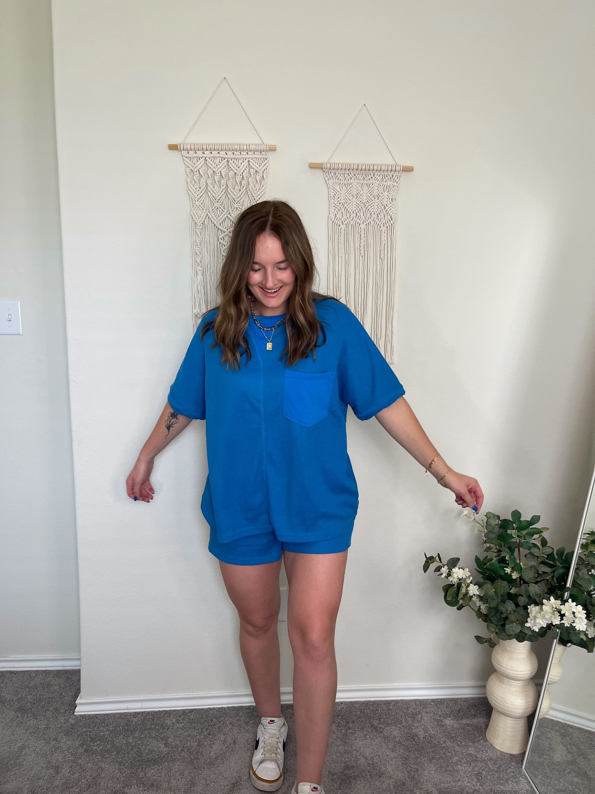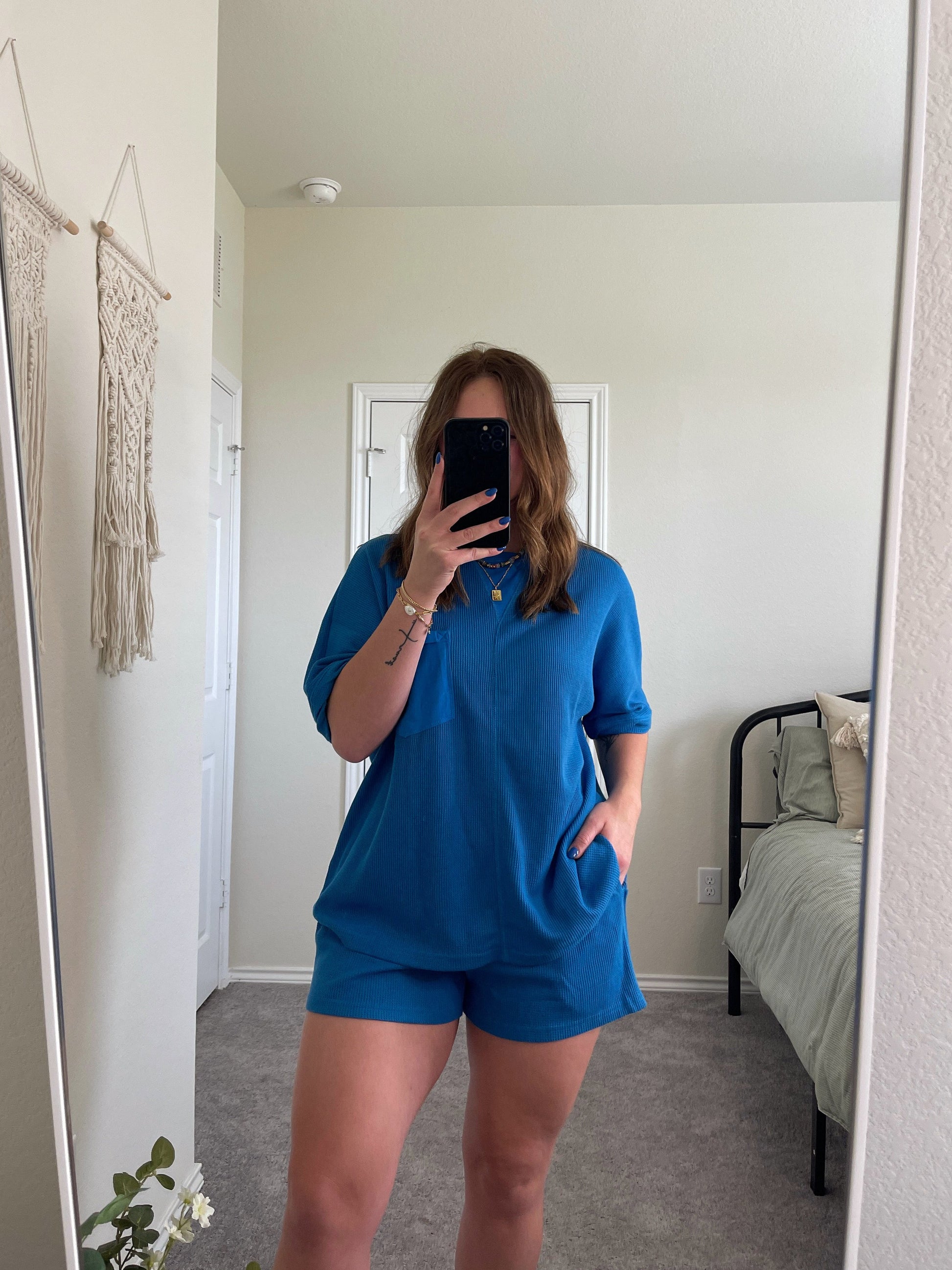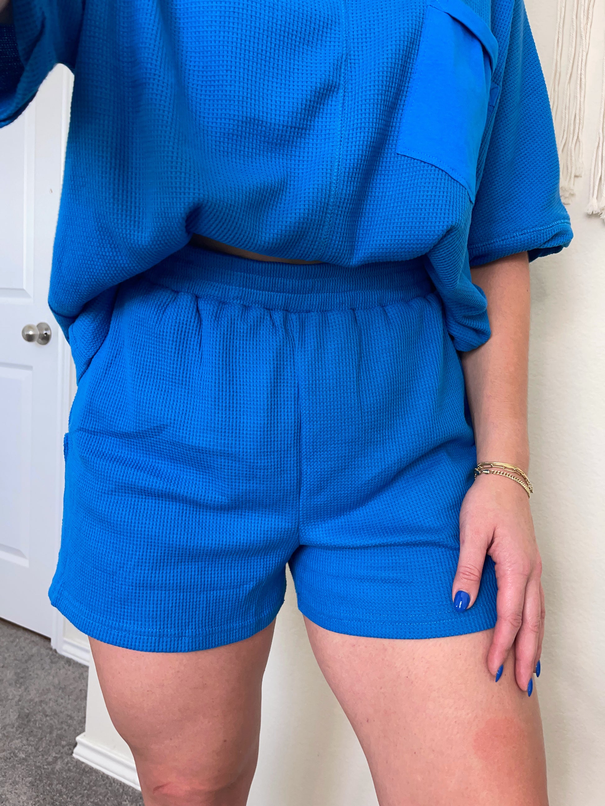 Comfy Moves Waffle Knit Set - Royal Blue
