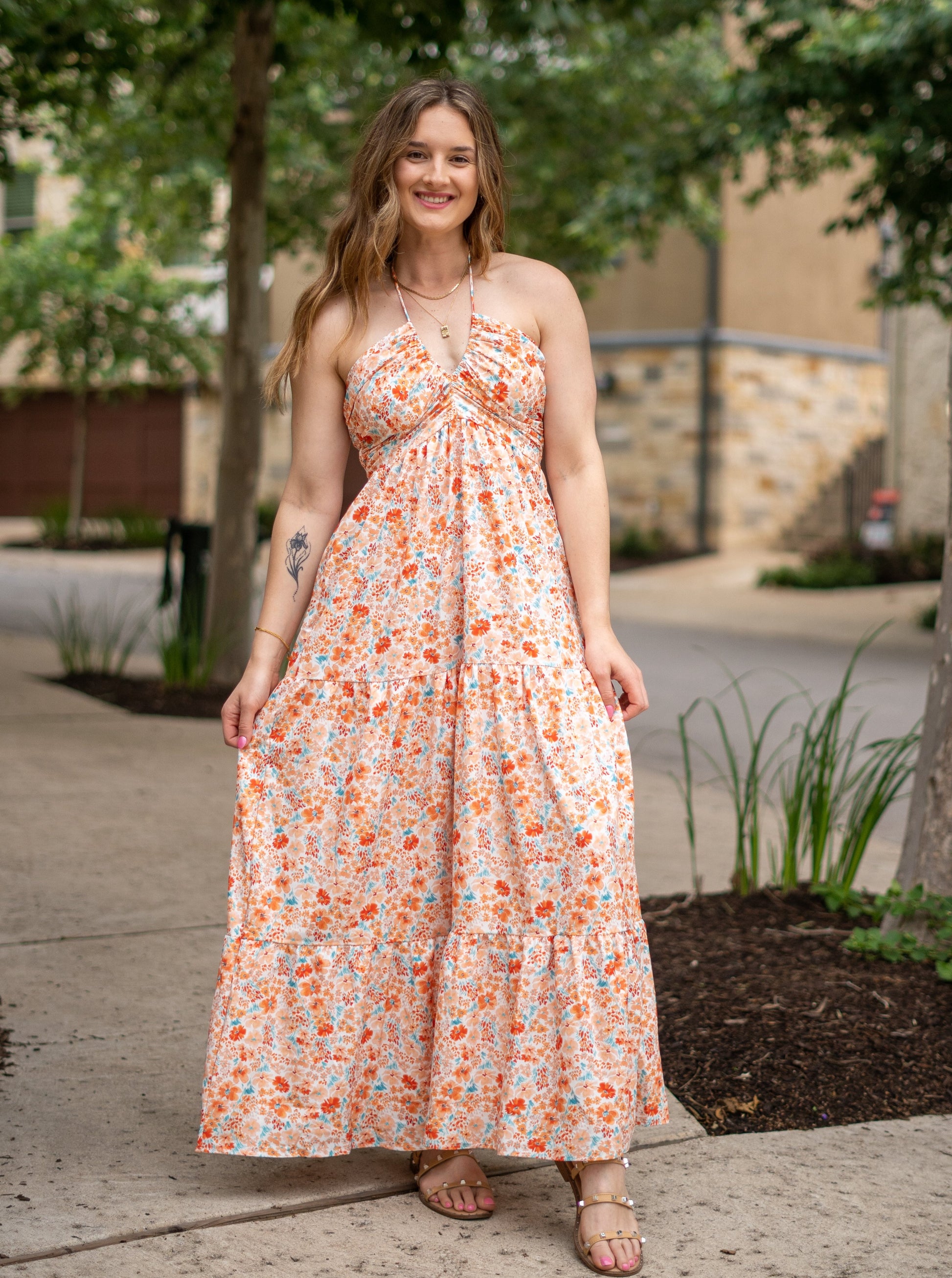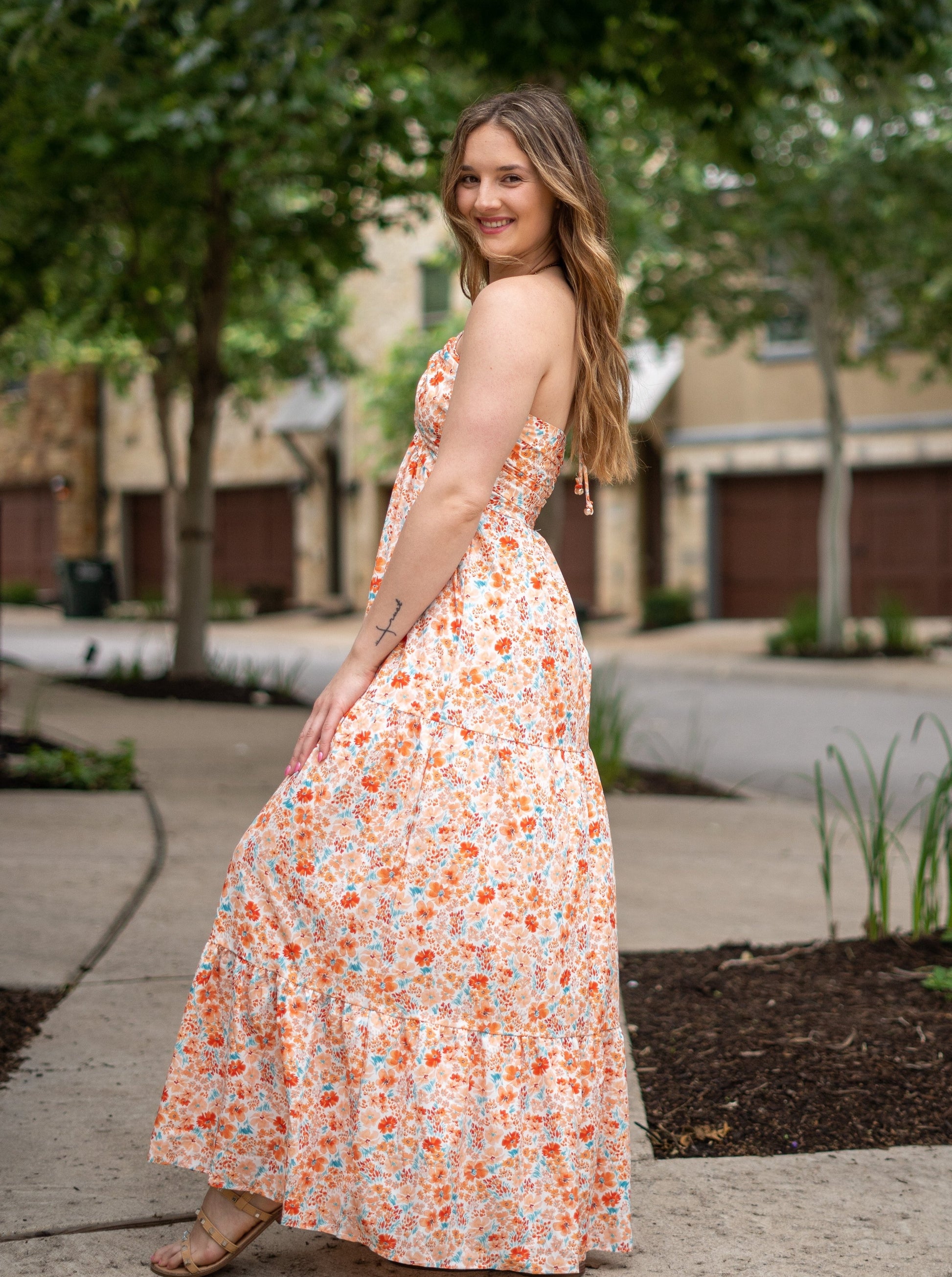 Floral Perfection Halter Neck Tiered Maxi Dress