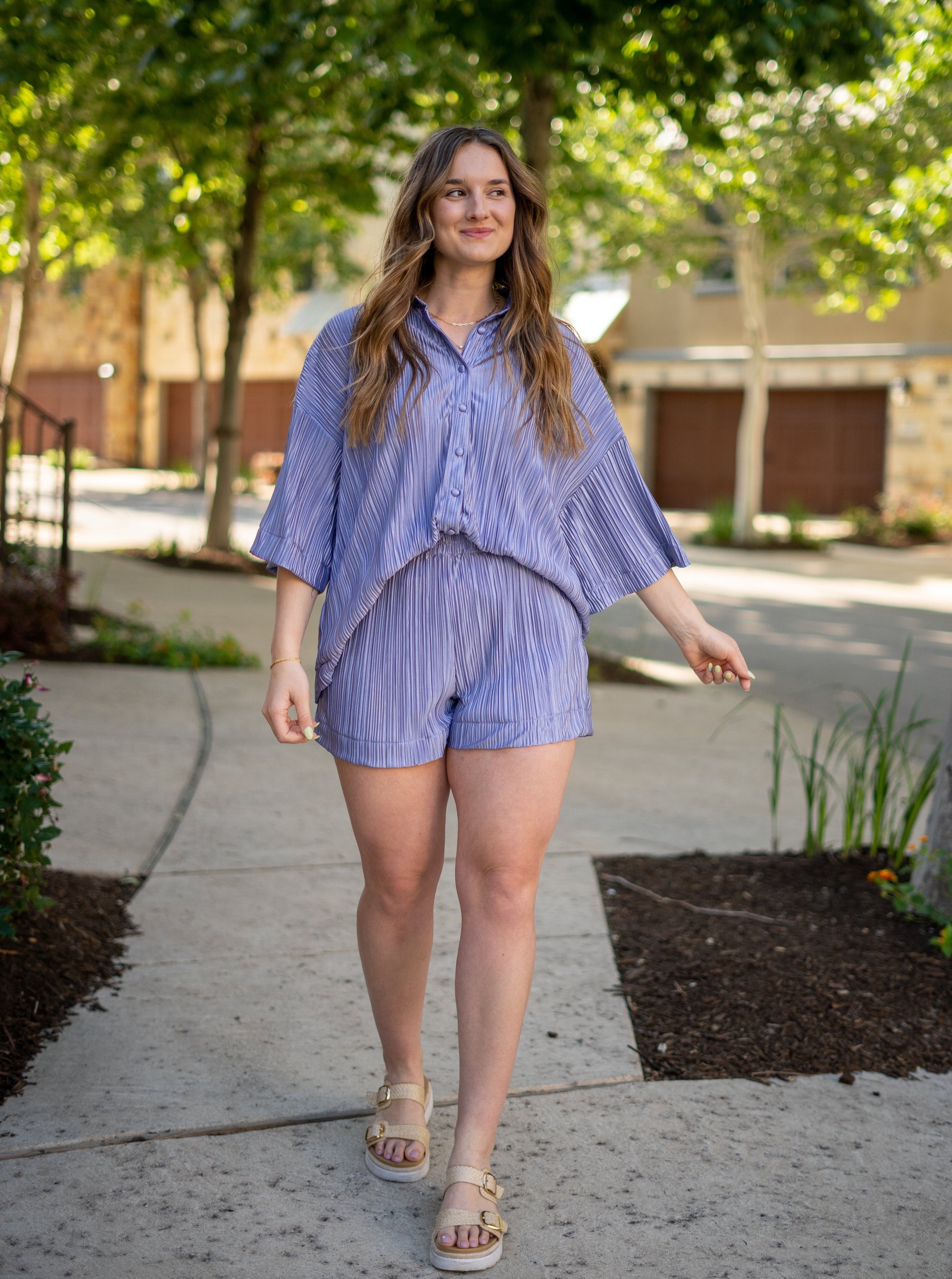 Season Of Bliss Purple Plisse Shorts Set